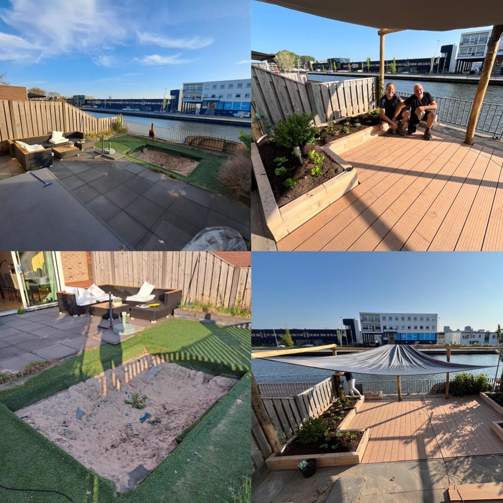 De tuin was voorheen kunstgras met een kuil voor een trampoline. Nu de kinderen die niet meer gebruiken, werd het tijd voor iets nieuws. De klant kwam met een AI-plaatje voor hoe hij het in zijn hoofd had en dat hebben we kunnen realiseren voor hem. Met oog voor waterafvoer, inheemse beplanting en duurzaam materiaal.